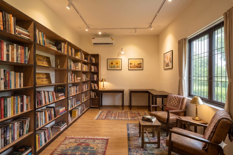 "A quiet, intellectual retreat featuring a curated collection of books to keep the mind engaged and sharp"